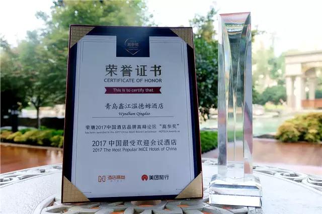 青島,2017年9月——青島鑫江溫德姆酒店榮獲由“酒店高參”舉辦的2017首屆高參獎(jiǎng)“最受歡迎會(huì)議酒店”