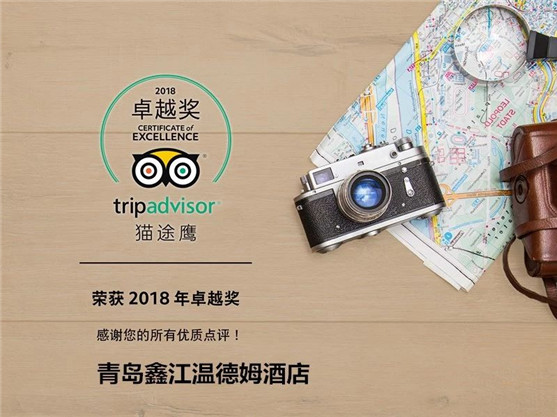 青島鑫江溫德姆酒店近日再次獲得全球最大旅游點(diǎn)評(píng)網(wǎng)——貓途鷹(TripAdvisor中文官方網(wǎng)站)頒發(fā)的“2018年度卓越獎(jiǎng)”和《SPLENDEUR赫》雜志主辦的“2018年度第五屆中國(guó)區(qū)旅游勝地城市高端酒店金榜”頒發(fā)的“最佳卓越服務(wù)商務(wù)酒店”。