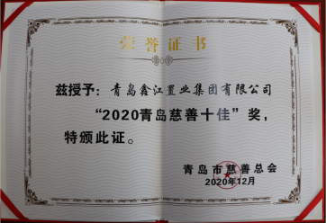 2021年1月7日,由青島市慈善總會主辦的2020年度“青島慈善十佳”頒獎晚會在青島電視臺演播廳舉行。為樹立慈善典型,激勵先進,弘揚慈善文化,青島市慈善總會在全市范圍內開展了2020年度“青島慈善十佳”評選表彰活動,經過組織評選,青島鑫江置業集團有限公司榮獲“2020 青島慈善十佳”、“抗擊新冠肺炎疫情捐贈貢獻獎”兩項榮譽。