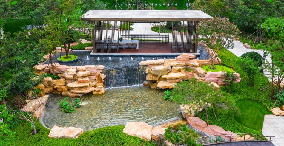 親近自然的生活,總會讓人感到從容愜意。鑫江·瑞府將人文底蘊與現代國際審美潮流深度融合,形成獨樹一幟的“鑫派園林”。小橋、流水、奇石、花木、亭臺、院落......這里更像是《千里江山圖》與達官貴府的組合復刻,隨處可見匠心的呈現。