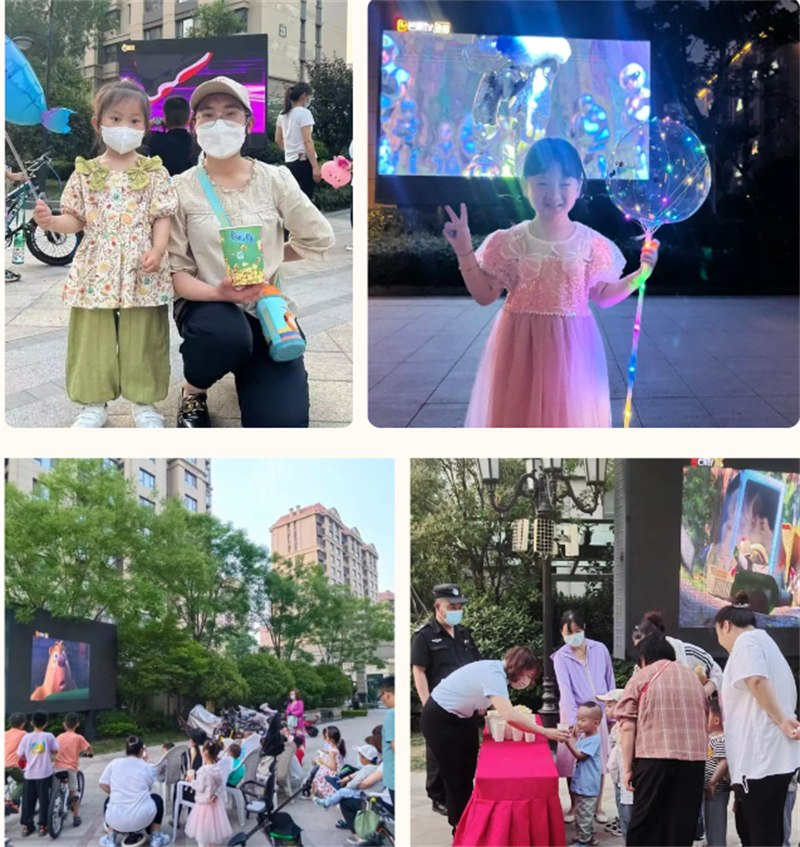 露天動(dòng)畫(huà)片電影是專屬小業(yè)主的時(shí)間,也是大業(yè)主們找回童年的時(shí)間,互相陪伴,分享彼此樂(lè)趣,還有免費(fèi)的爆米花和會(huì)發(fā)光的波波球,邊吃邊看不要太嗨皮呀~